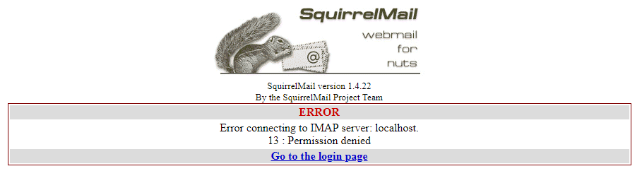 CentOS SquirrelMail Error 2019-08-19 1. 13 : Permission denied setsebool -P httpd_can_network_connect=1 2. 111 : Connection refused service dovecot start