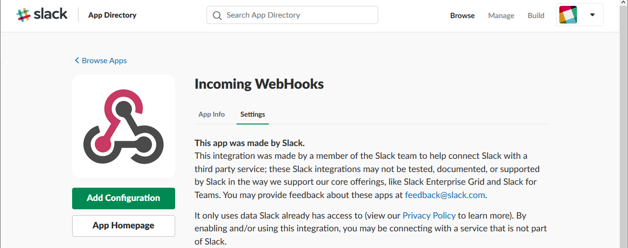 2. Incomming Webhook 생성